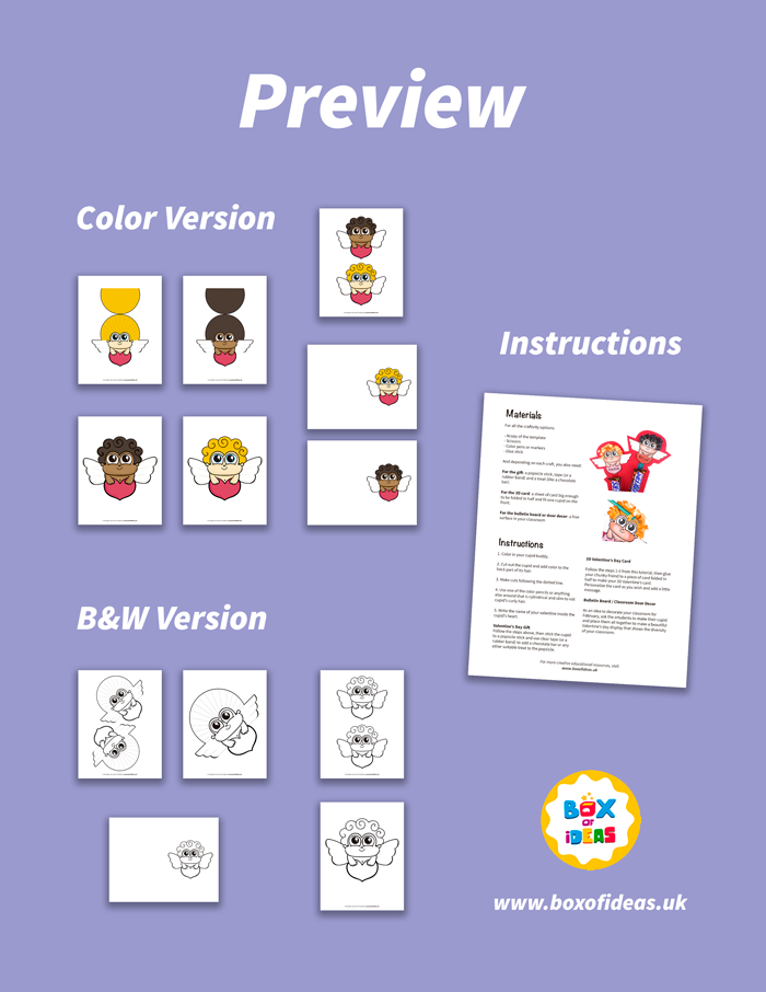 - Small Craftivity Template in two skin tones and black and white (two cupids in one page)